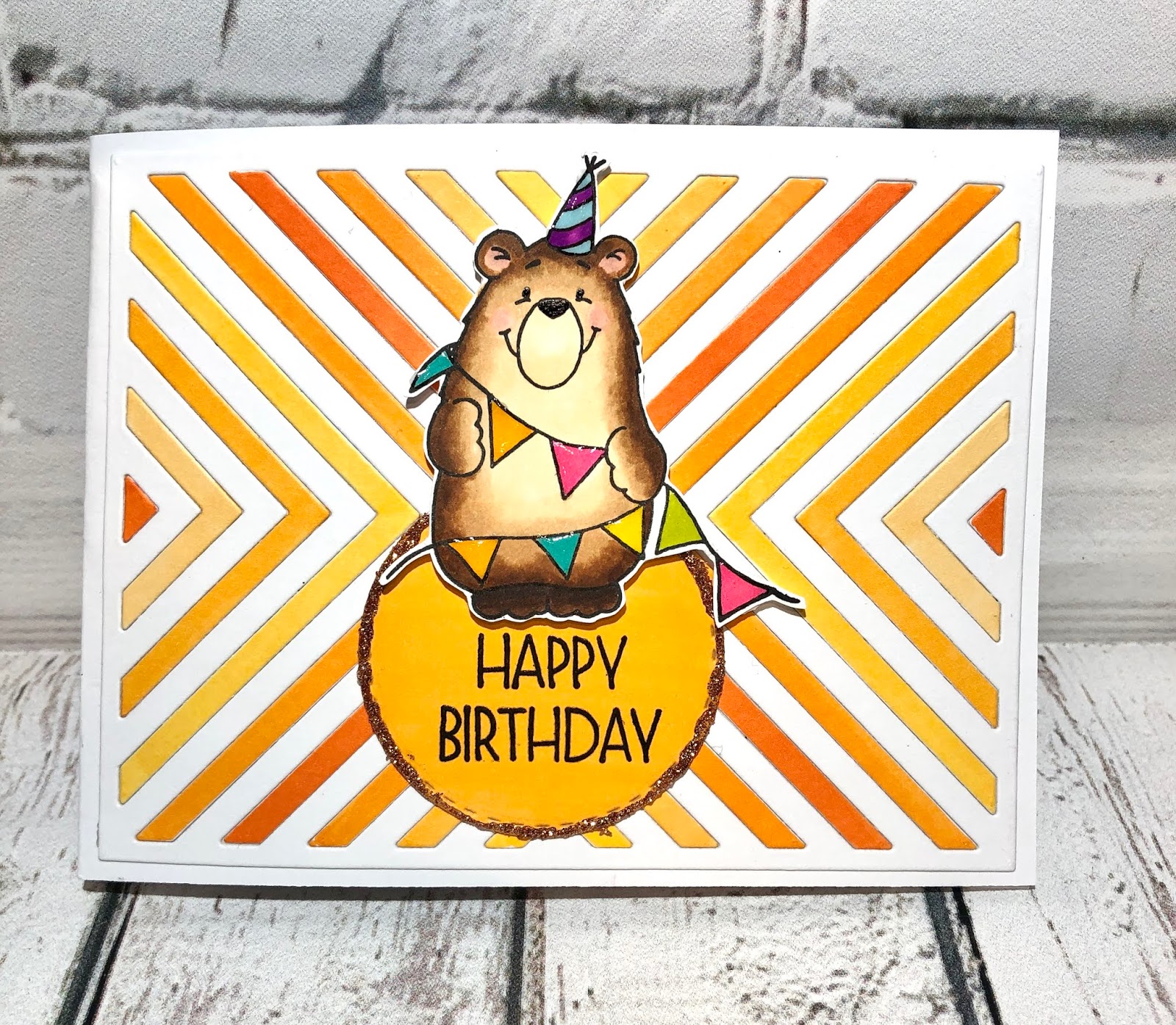 After removing the backing from the Die Cut N Bond, I adhered the cover panel to the front of my card and pressed it into place. Then I adhered my circle sentiment, popped the bear up on foam tape and adhered him to the sentiment circle.
