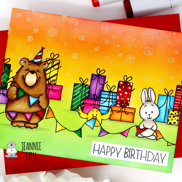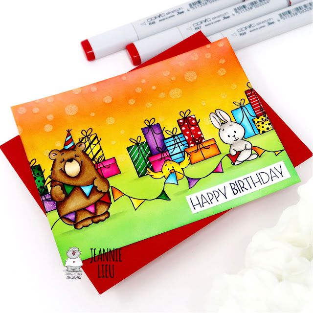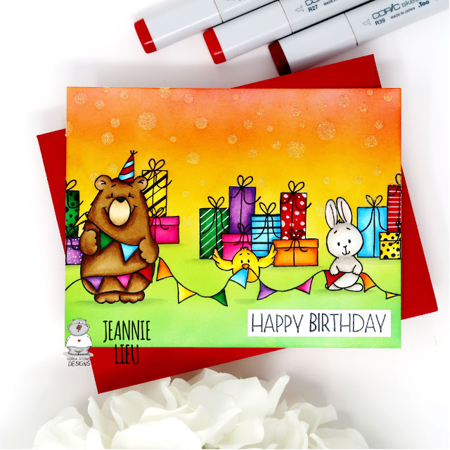 Hi everyone! It’s Jeannie (InsideoutJeans) on the blog today with Gerda Steiner Design’s stamp set named, Birthday Bear. I am head over heels for this set. It's freaking adorable! When I saw it, I knew I had to create a scene with it.
