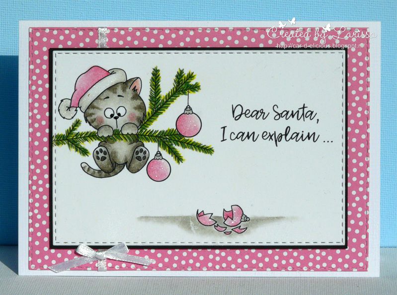 Hi everyone, I am Larissa from Car-d-elicious and this time I am posting 2 christmas cards. I have used the same images, but because I used different design papers for the cards and coloured the images a bit different. they are not exactly the same.