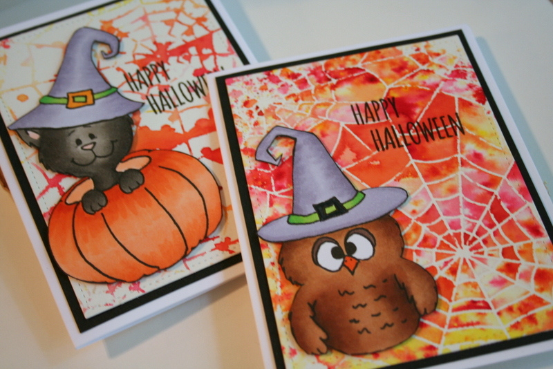 Hello crafty friends! It's Jess from JessCrafts.com. Today I am sharing a card made with the Halloween Cat Bat Owl digital set. This is an amazing value. You get 5 digital stamps for just $2.50! I colored the two large images and paired them with a stenciled background. For more on how I made them check out my video.