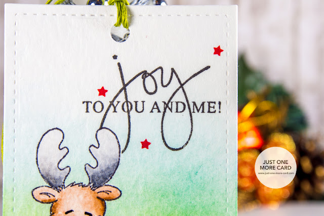 The I put the mask back on my colored image before stamping the sentiment from Mama Elephant and I have to admit, I like how the critter partially obscures the sentiment. It adds a nice layer effect to the otherwise simple tag.