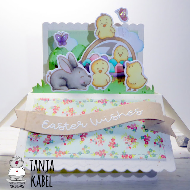 it's Tanja here and with Easter being right around the corner I created this sweet Pop-up Box Card using the wonderful Gerda Steiner Designs Chicks and Bunnies set: