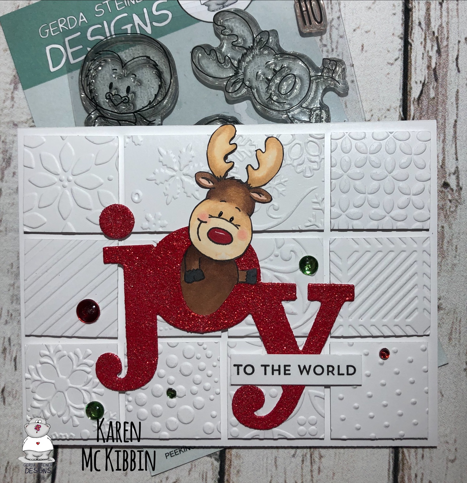 I made a second card with the reindeer image and cut the Joy out of red glitter cardstock. These cards have just got so much fun texture in them and I hope you’ll give this a try!