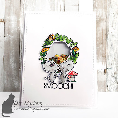 For this card I have chosen to make a fall smooch shaker card using several of Gerda's stamp sets.
