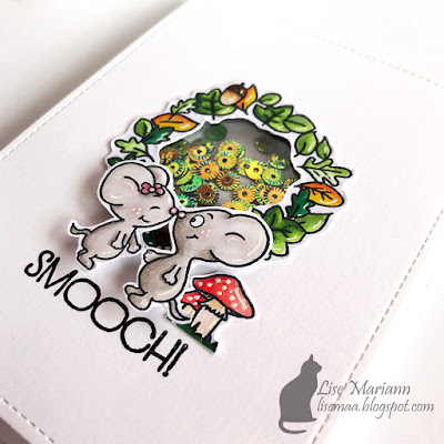 I started by stamping the kissy-mice (from the "Fall in love" stamp set) and the mushroom and wreath (both from the "Foxes" stamp set).