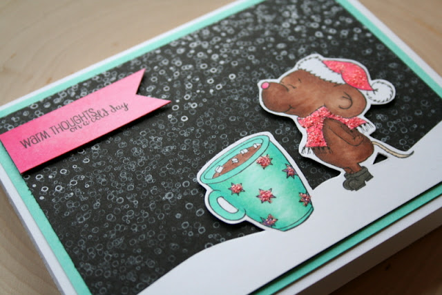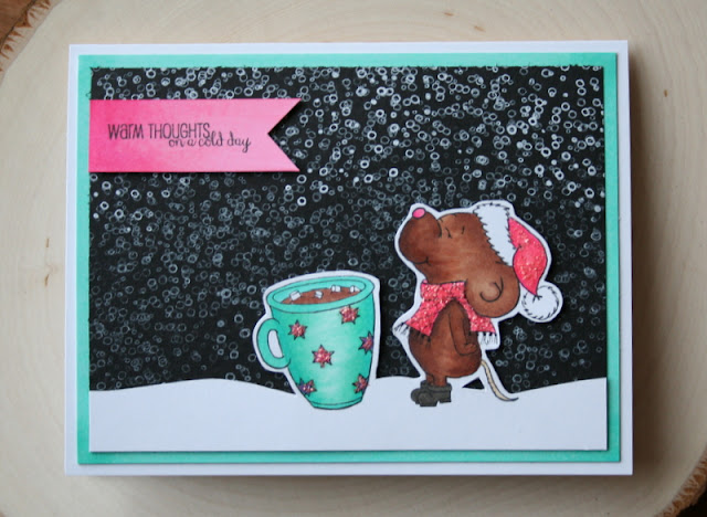 Hello crafty friends! It's Jess from JessCrafts.com. Today I am sharing a card made with the It's Beginning to Smell a Lot Like Christmas rubber stamp set. I wanted to create a blizzard for this cute little mouse to be enjoying his cocoa in.