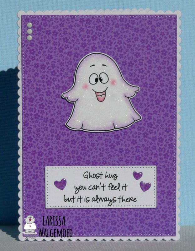 Crea-nest-lies XXL 44 from Crealies and then I adhered it with foamtape on the card. I adhered the ghost also with foamtape above the sentiment. I have die-cut a couple of tiny hearts with the
