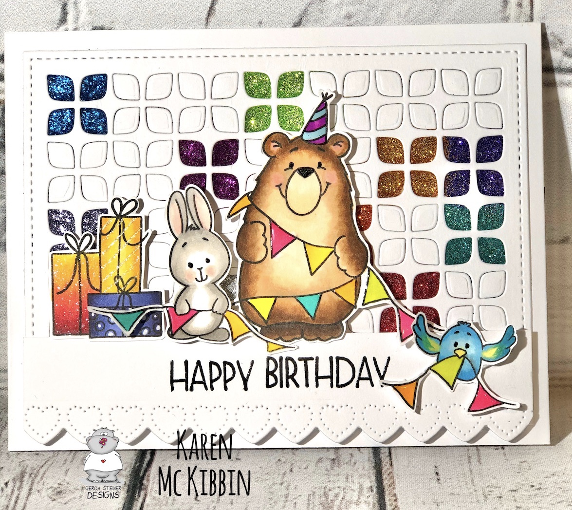 Glittery Birthday Bear - Fun Happy Birthday Card by Karen!