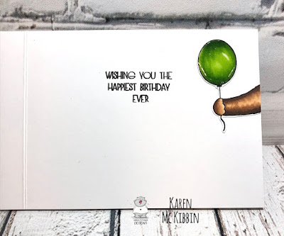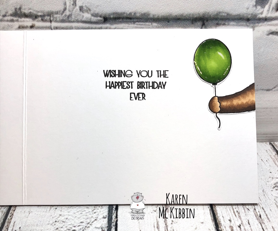 On the inside of the card, I stamped the sentiment from the Birthday Bear stamp set and added that super sweet bear arm with the balloon. I love that arm!