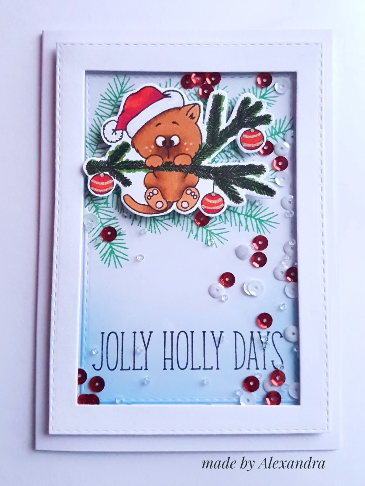 I colored the cute cat using Spectrum Noir Alcohol Markers and also added some more Christmas greens and a sentiment !