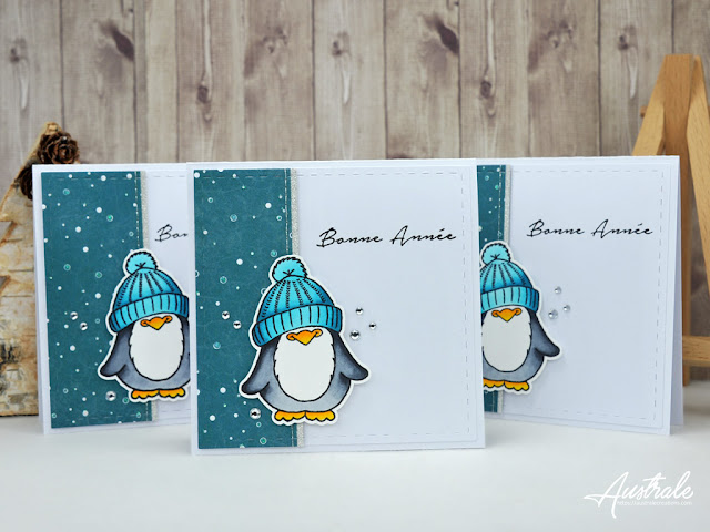 Today I present you a series of greeting cards made with the Long time no see Penguin 3x4 clear stamp set , I love him he is so cute.