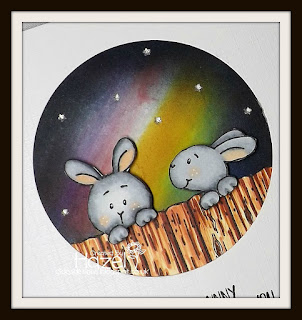 The stamp set is a 6 x 4 size one with lots of cute bunnies, a fence background and a couple of their friends with 2 Sentiment Stamps as well. It inks up beautifully and Ireally enjoyed playing with them.