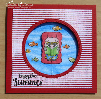 My card is a spinnercard. I stamped the air matress and the reading piggy from the set