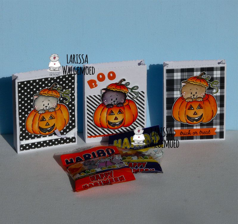 Gerda Steiner designs. This time I made 3 halloween treats bags.I made the bags from white cardstock with the