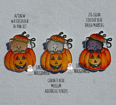 Peeking pumkin kitty from Gerda Steiner designs. The only difference that I decorated them all in a different way and I also coloured each cat with a different colouring medium.