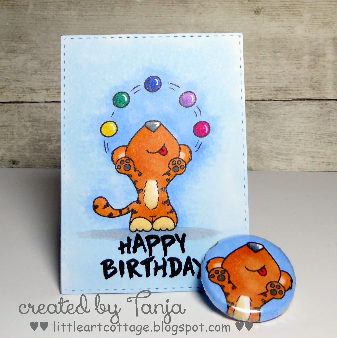 it's Tanja here and I created this fun badge-card using the Gerda Steiner Designs Juggling Tiger: