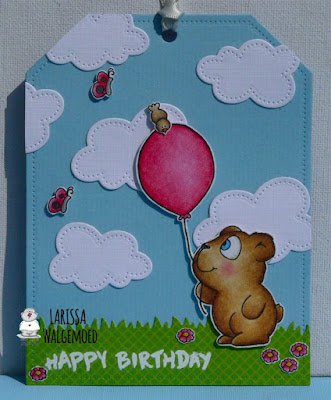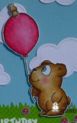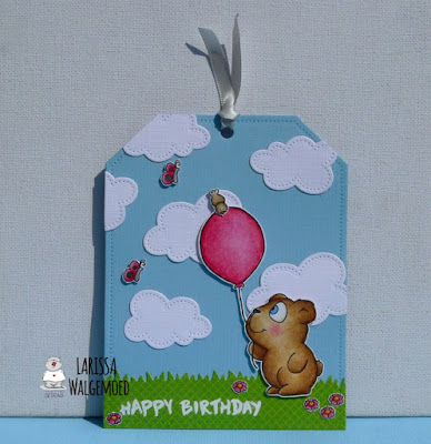 Lovely panda's from Gerda Steiner designs. I decided to colour the panda as a normal bear this time with my Polychromos pencils and the black glaze pen. I have die-cut the large tag from light blue cardstock with the