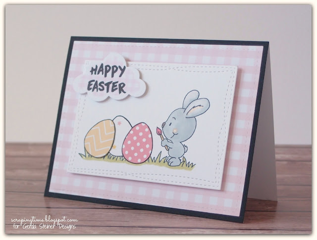 it's Yolanda here, from Scraping Time. I am so happy to show you the card I have made with the sweet new stamps set "Brush bunny".