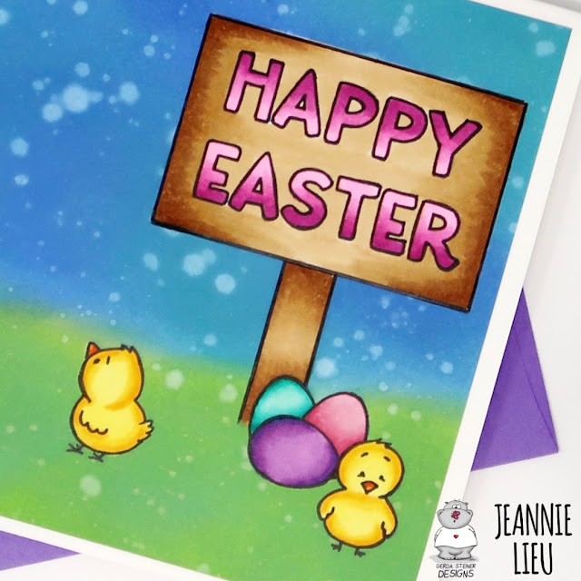 Hi everyone! It’s Jeannie (InsideoutJeans) on the blog today with Gerda Steiner Design’s stamp set named, Chicks and Bunnies. It's the perfect set for an Easter card and honestly, it's so cute that it's really add brightness to my day.