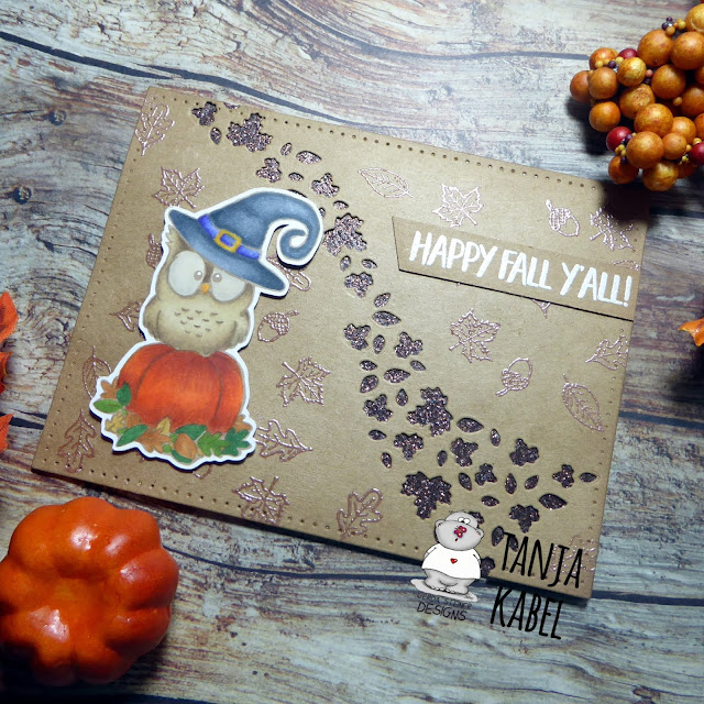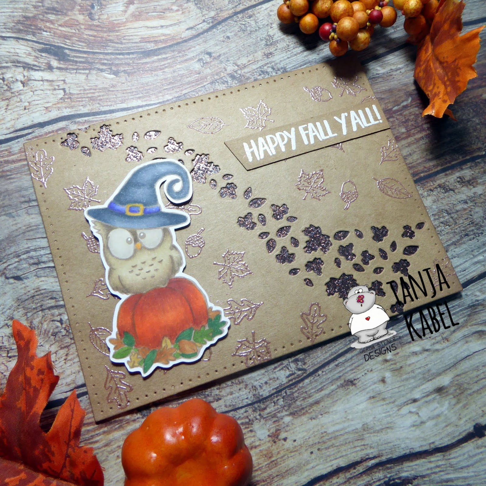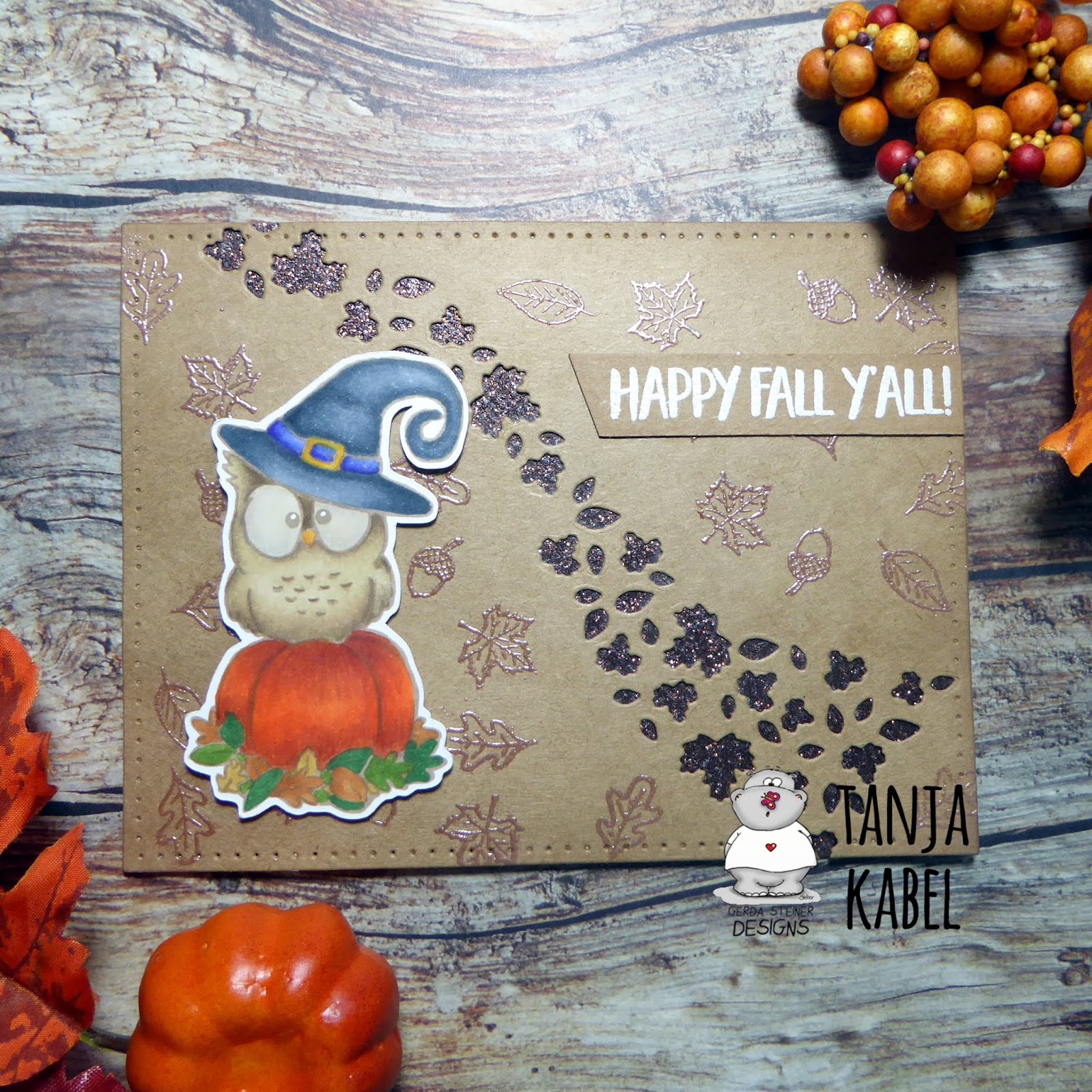 • stamp the owl from the Gerda Steiner Designs Where is the Candy? set with Lawn Fawn Crunchy Leaf