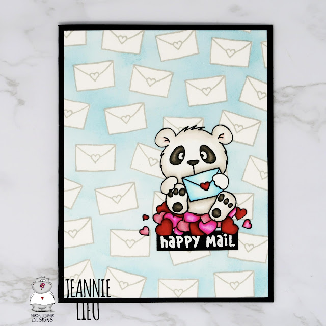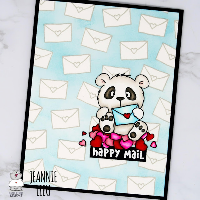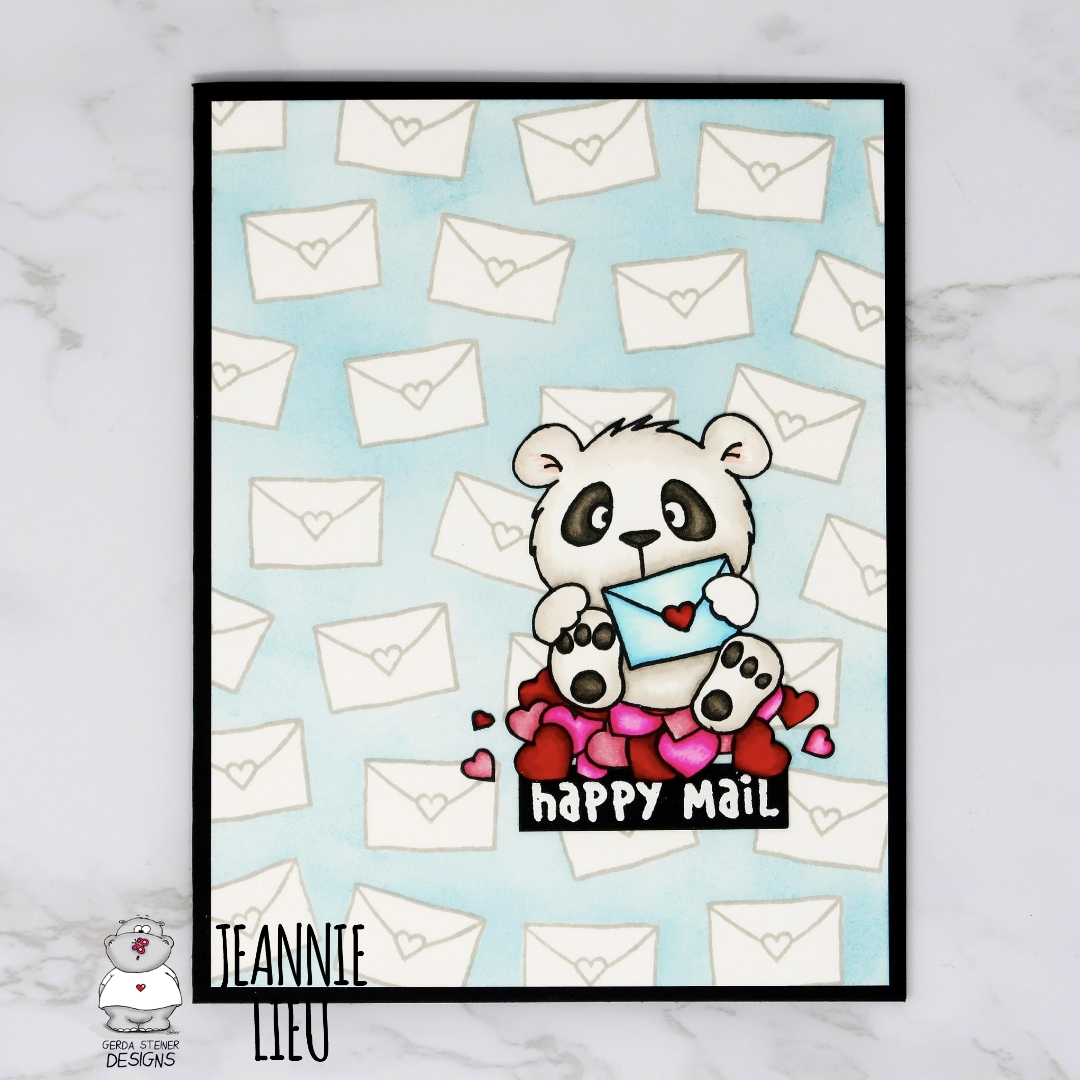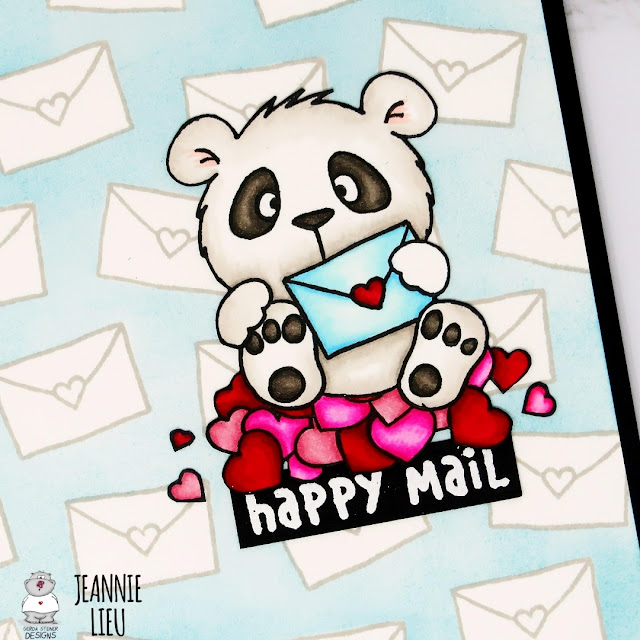 Lovely Pandas set, I stamped and masked the Panda so he's sitting on top of the pile of hearts. He's super adorable and just seems to happy to be sending happy mail!