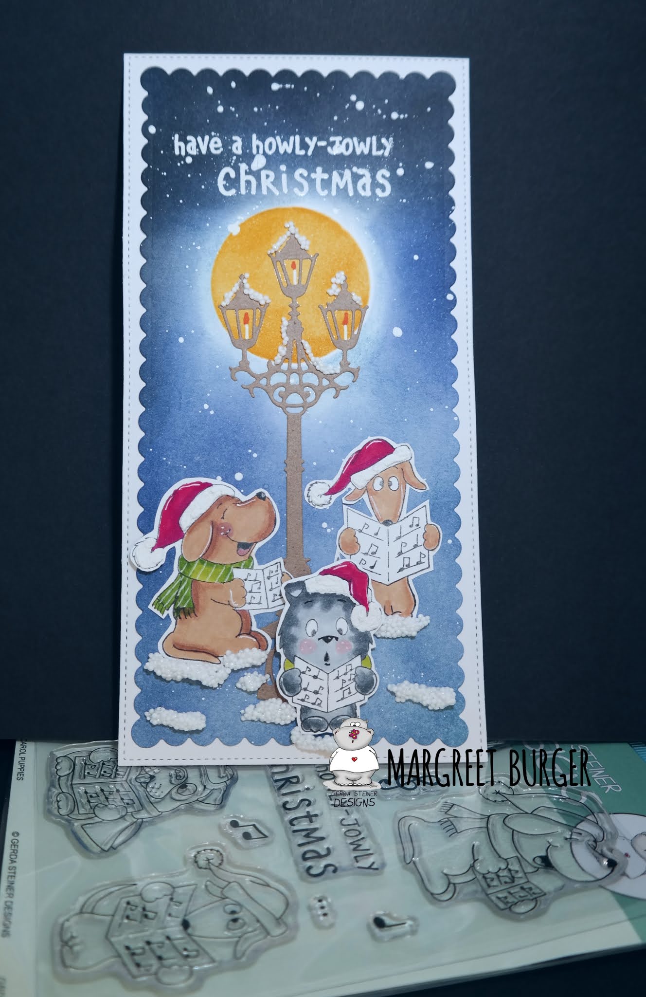 Hello, Margreet here and I created this card with the adorable Carol Puppies clear stamp set from Gerda Steiner Designs: