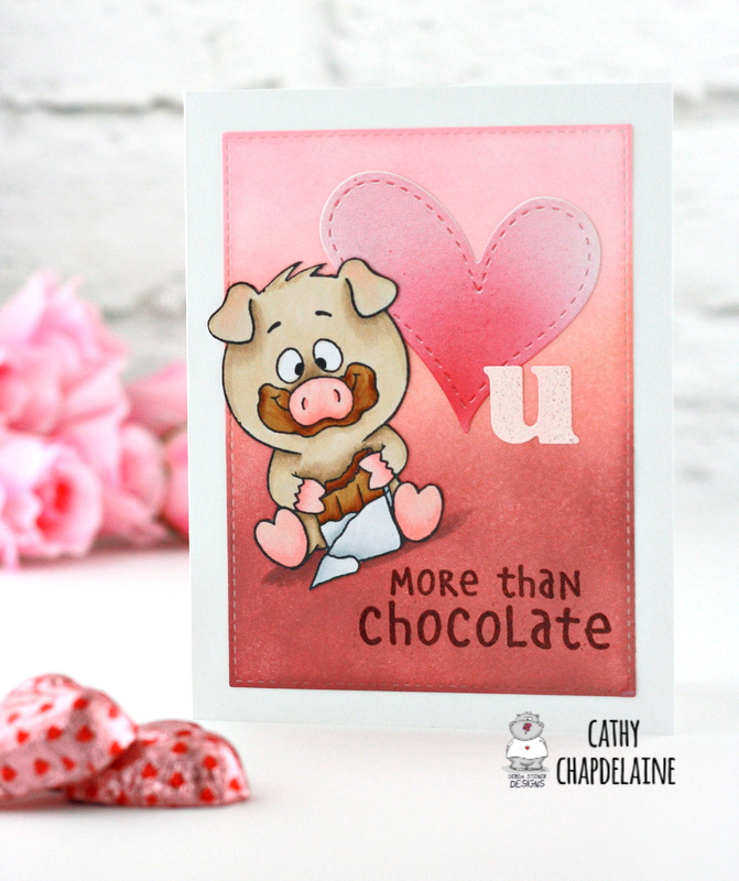 Hi there! It's Cathy here sharing a super simple card today with this cute little pig from the More Than Chocolate stamp set. With Valentine's Day just a few days away, there's still time to make a quick and easy card or two!