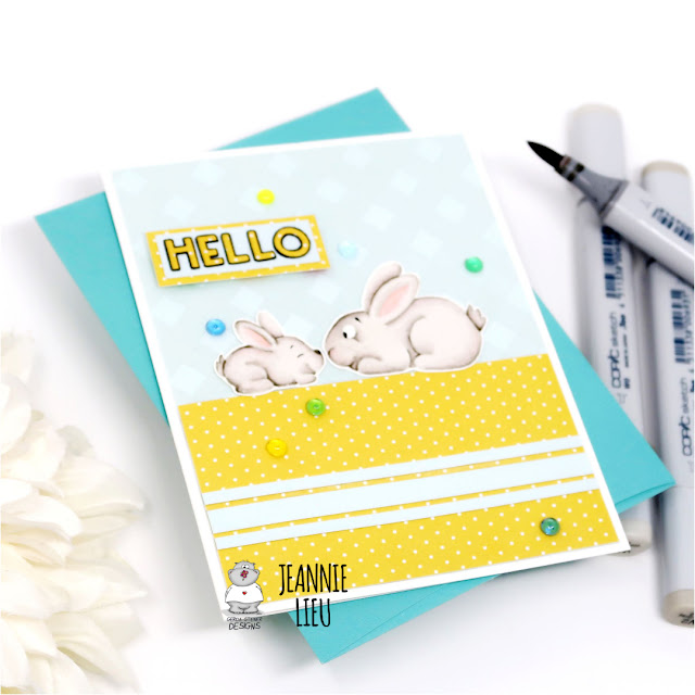 Awhile back, I stamped out the images using a no-line coloring ink and colored them using alcohol markers. I always love the soft look of no-line coloring but sometimes I'm not sure what to do with them. From all the images, I decided I wanted to use the two bunnies from the set for this card.