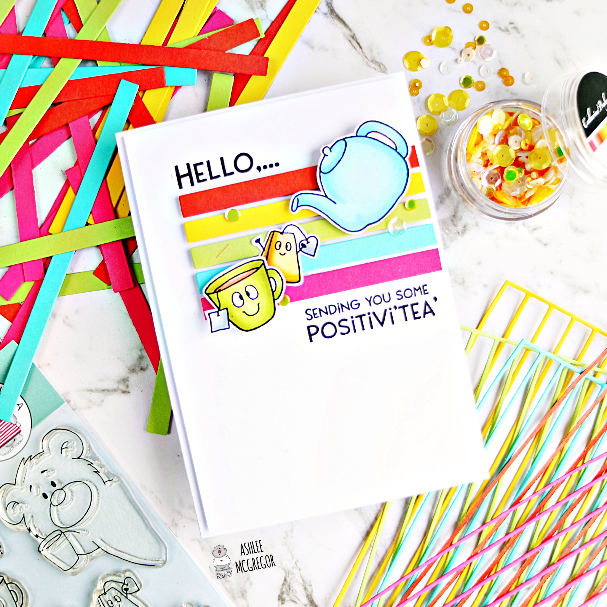 My card today uses one of the latest released stamp sets "Positivi-tea" which I think is my new fave GSD set (Oh gosh who am I kidding, I love every GSD set hehe)!!