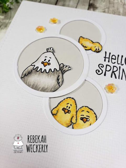 It is still blowing snow where I live but it is not stopping me from thinking about Spring! Hello! Its Rebekah with you this evening sharing this card made using the Hello Spring Stamp set!