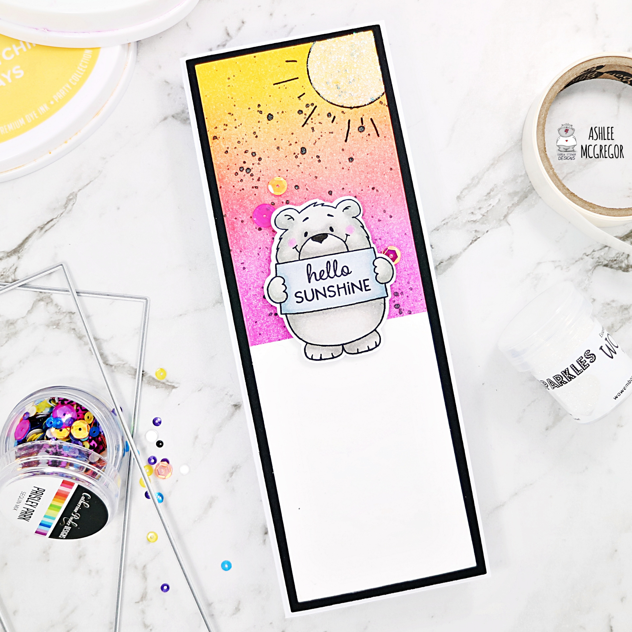 I then stamped on the sun from the Hello sunshine stamp set and filled it in with some pretty WOW! Sparkles for a touch of glitter!!