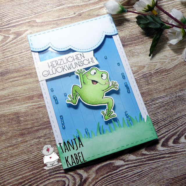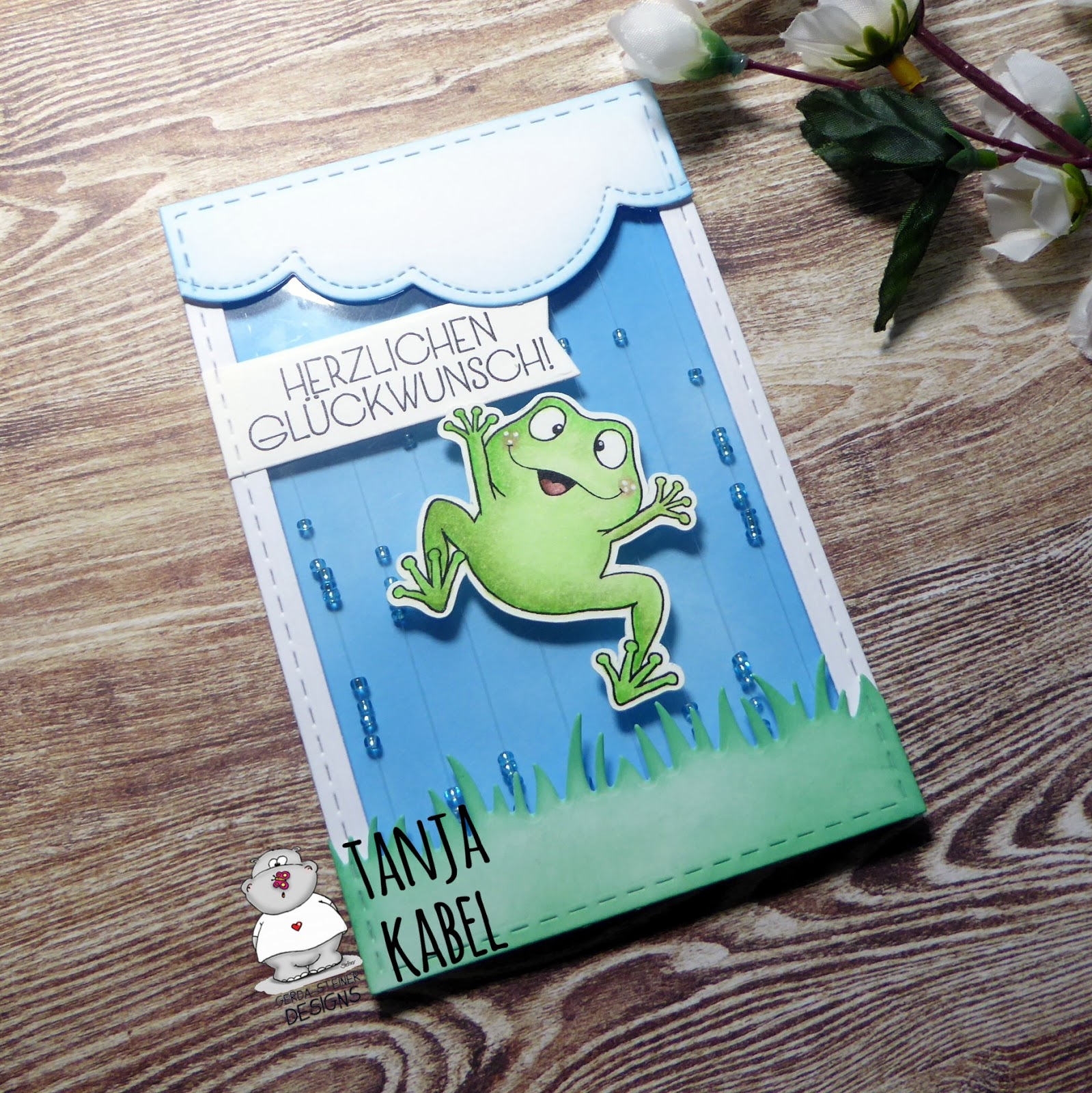 it's Tanja here Gerda Steiner has released the fabulous new Frogs stamp set with EnglishSpanish and German  sentiments and over the next three weeks I will show you my creations with the Gerda Steiner Designs German Froesche set. This joyful birthday card is my second creation: