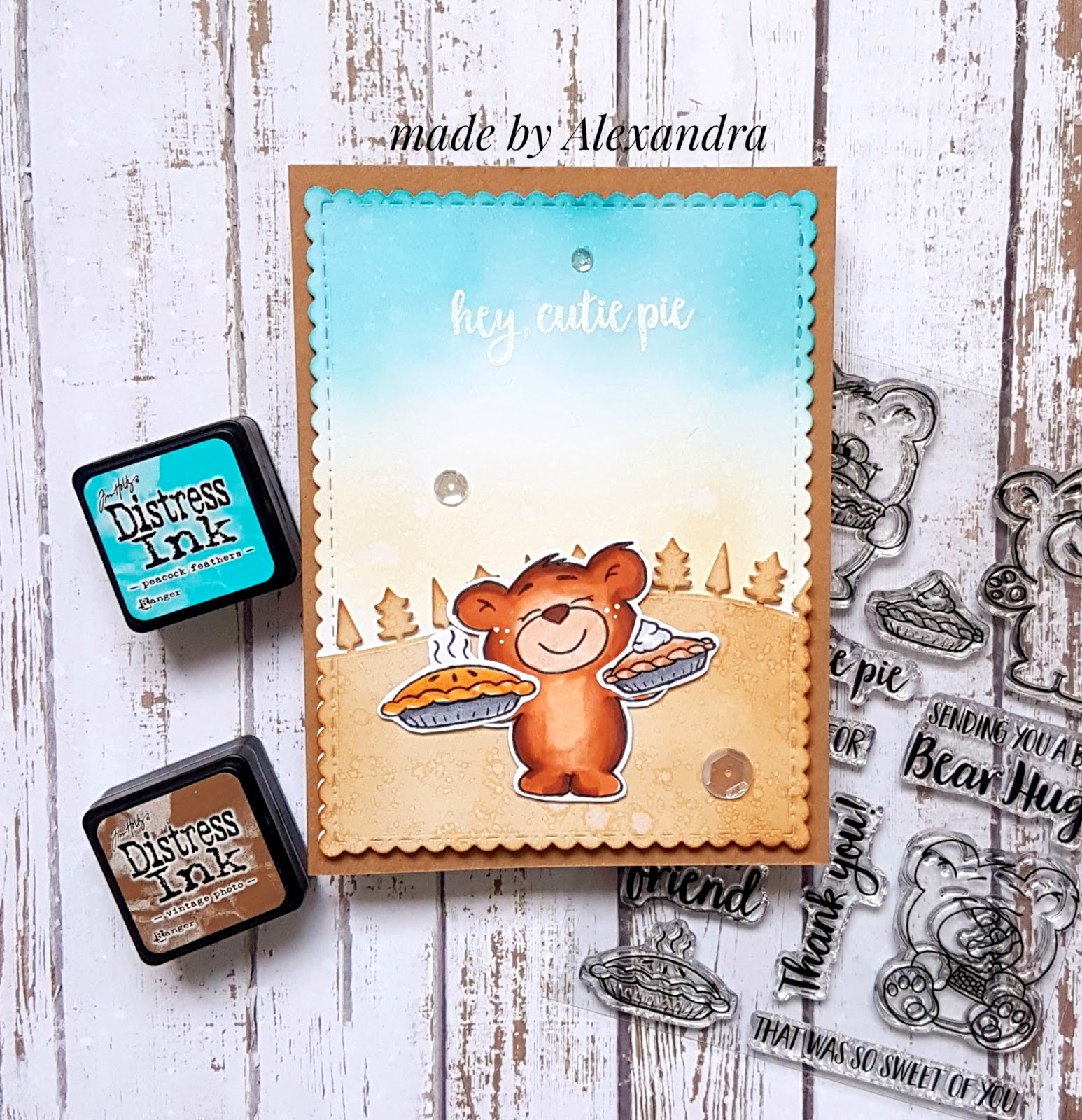 Alexandra here from made by Alexandra  sharing a card that I made using this adorable stamp set from Gerda called More than pie with cute bear and pie