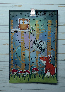 This time I have made an autumn card with clearstamp set Foxes.
