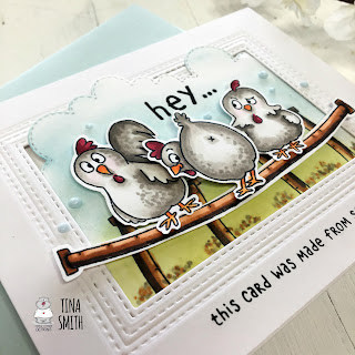 Hello and Happy Thursday Crafty Friends!  Tina here from Cards and Coffee Time with a super fun card "made from scratch" to share with you today:)  I am using the New Chicken Scratch stamp set and I have to tell you this set had me smiling all day long!  I love the punny sentiments along with the silly chicken expressions.  We own a few chickens here at the Smith home, so I don't have to tell you I fell in love with this stamp:)
