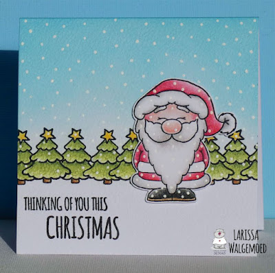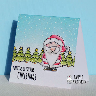 Hello, Today it is my turn again to post a card on the blog from Gerda Steiner designs. This time I have made a christmas card with the clear stamp set Holiday friends from Gerda Steiner designs. I have stamped the santa on a separate piece of paper and I have stamped the trees with the help of masking paper on the card. Then I have coloured all the images with my Polychromos pencils.