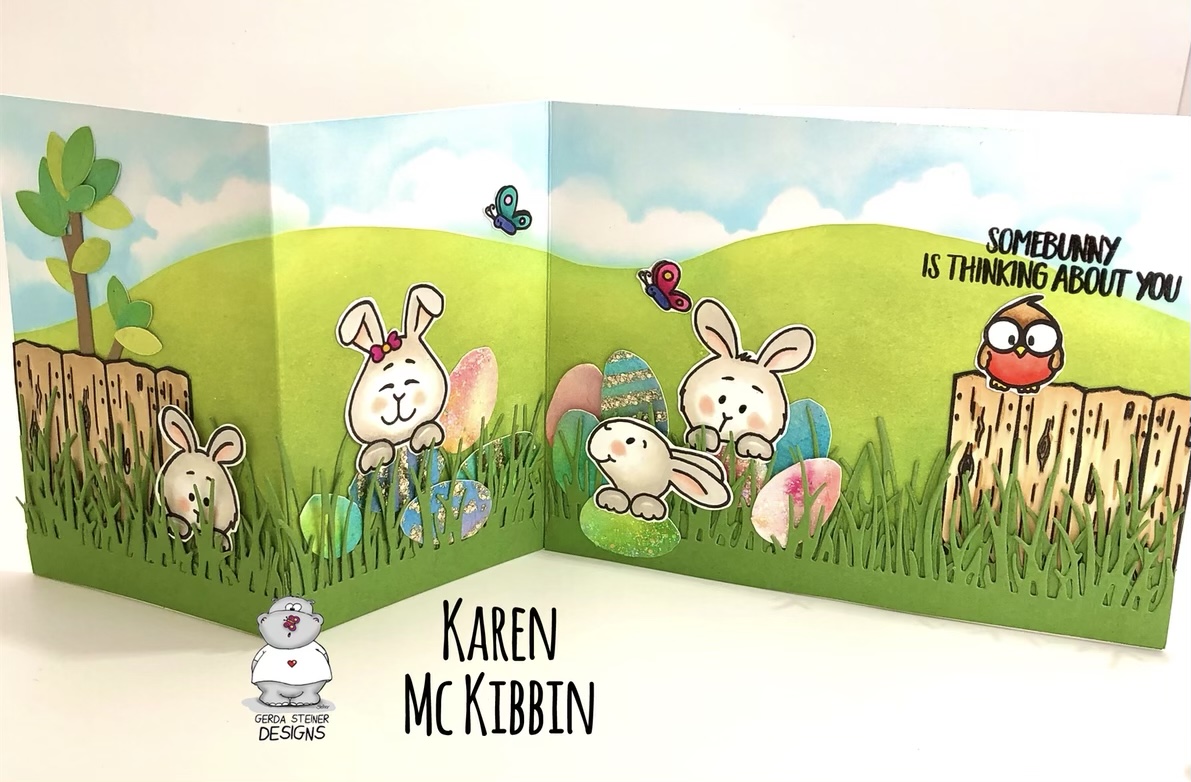 Hi and welcome, it’s Karen here today. It’s starting to feel like an early spring here in my part of Canada and since it’s almost Easter, I couldn’t resist making a card with cute bunnies and Easter eggs. And of course, it needed to have a little surprise factor so I’ve made it a Z fold card.