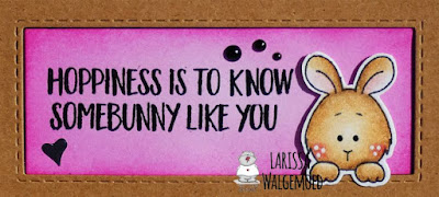 The sentiment is also from the stamp set Hoppiness from Gerda Steiner designs. I have stamped it with Versafine clair nocturne ink and then I embossed the sentiment with clear embossingpowder.