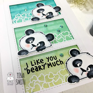 Hello and Happy Monday Crafty Friends!  Tina here from Cards & Coffee Time.  I have a fun card to share with you today using the Oh My Goodness!! Cutest Ever!! Lovely Panda Stamp set.  This little guy will melt your heart, I love his tilted head laying on his arm:)