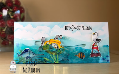 Hi there, it's Karen here today.  I’ve got an interactive slimline card to share with you that I originally had intended to use in the Heffy Doodle/Gerda Steiner Designs blog hop that happened yesterday. But I had a creative burst and made a second card which I liked better for the blog hop, so I’m sharing this first one with you today.