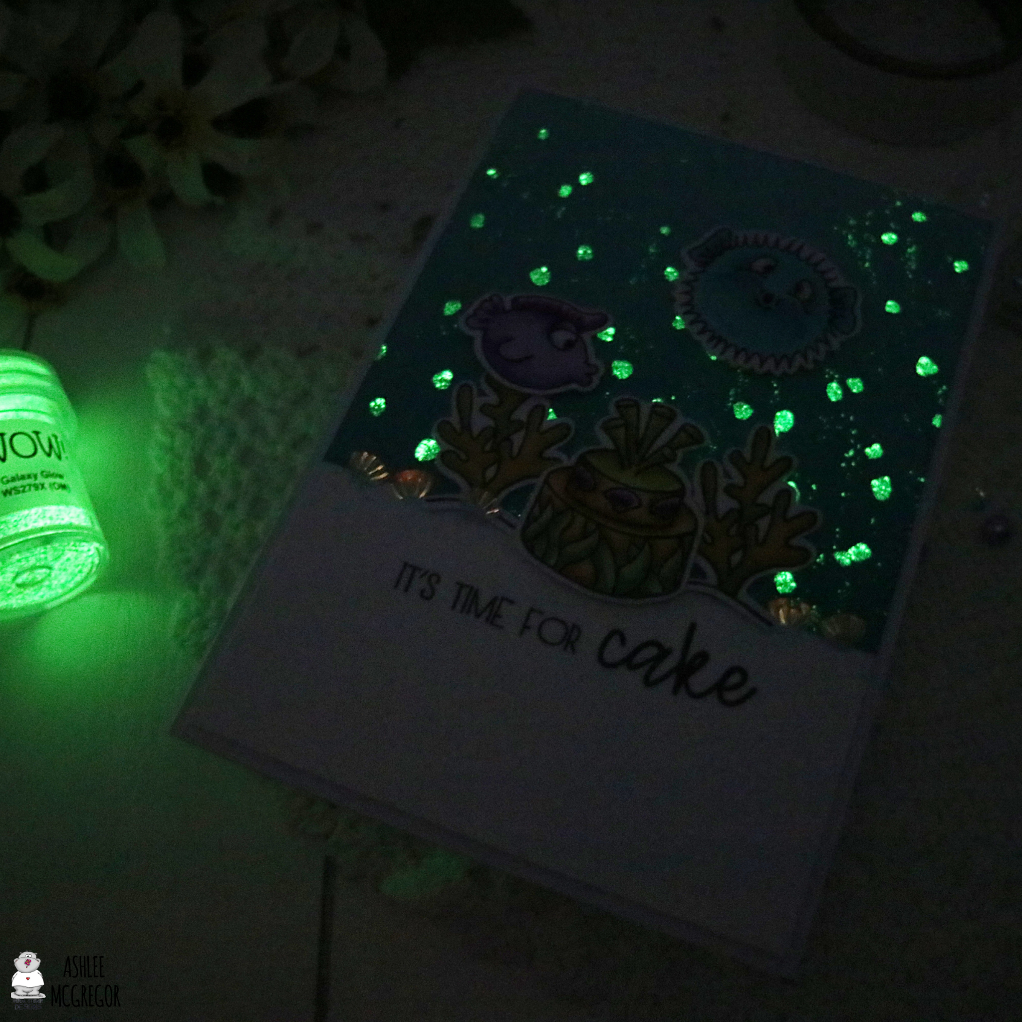 Ashlee here today and I have a super fun glow in the dark underwater scene card to share with you featuring the awesome stamp set "Big bite"....