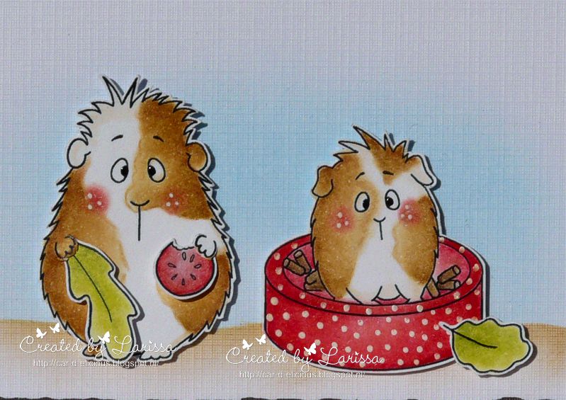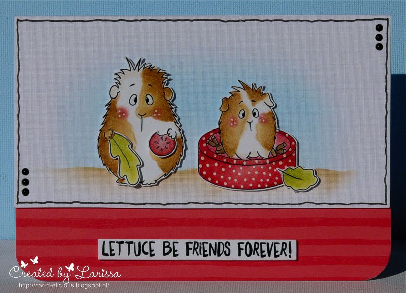 Wheek, wheek, wheek.... Guinea pig from Gerda Steiner designs. I stamped 2 guinea pigs and some lettuce leaves and a tomato. I have coloured all images with my