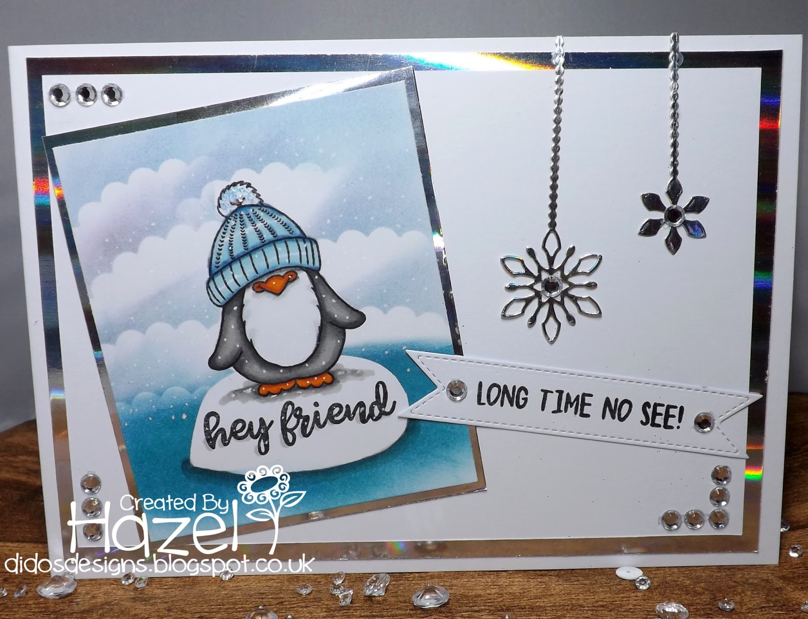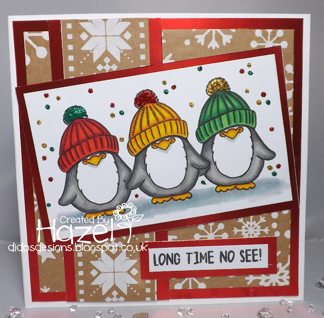 Its never too early to start on the Festive Cards so I thought my second card could be just that. I have masked the penguin so I could stamp him with some wee friends.