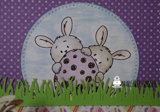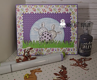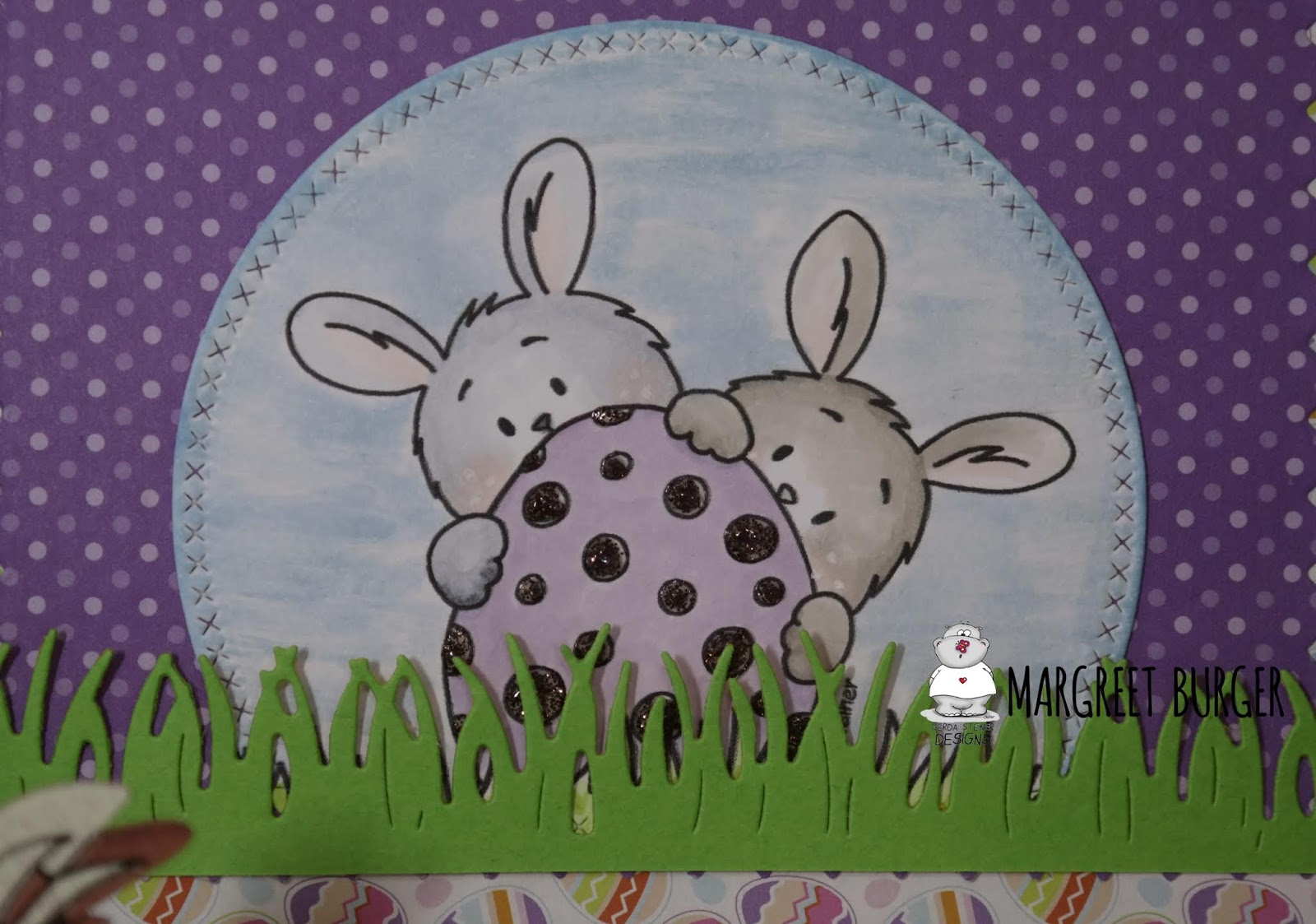 I created a card with the sweet digital stamp 'Bunnies with an Easter egg' from Gerda Steiner Designs. It is free to grab here.