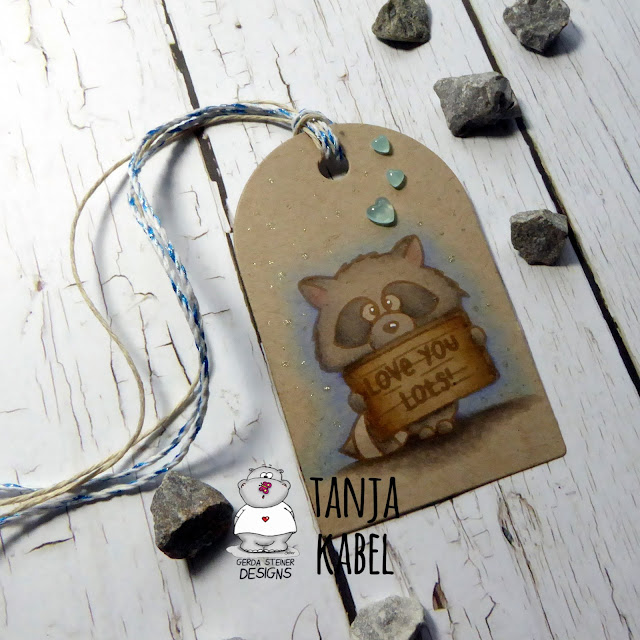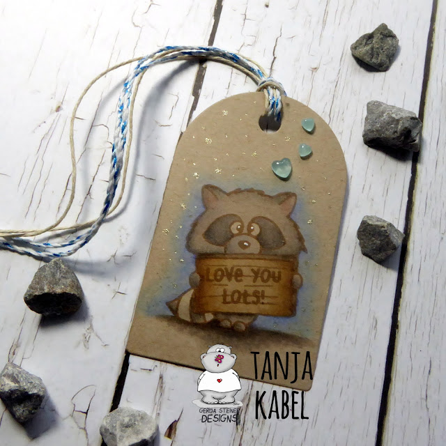 it' Tanja here. Take a look at this sweet racoon tag created with the Gerda Steiner Designs Sneaky Racoons Stamp Set: