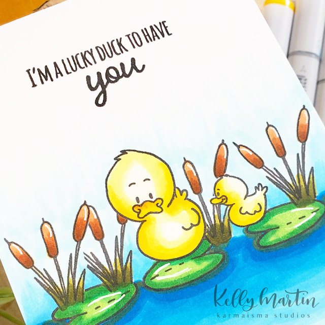 So for today's card, I used all those tips from that post to create this little water-ey scene! I stamped my duck and Cattail images from the