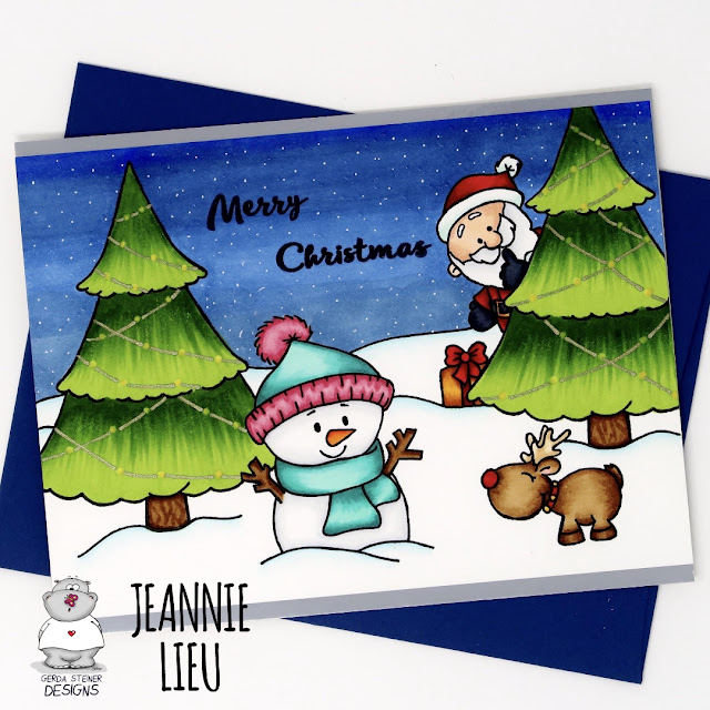 Hi everyone! It’s Jeannie (InsideoutJeans) on the blog today with a card using a couple Gerda Steiner Design’s stamp sets. I just wanted to create a fun Christmas scene surrounding the cute little snowman from the Little Snowman set.