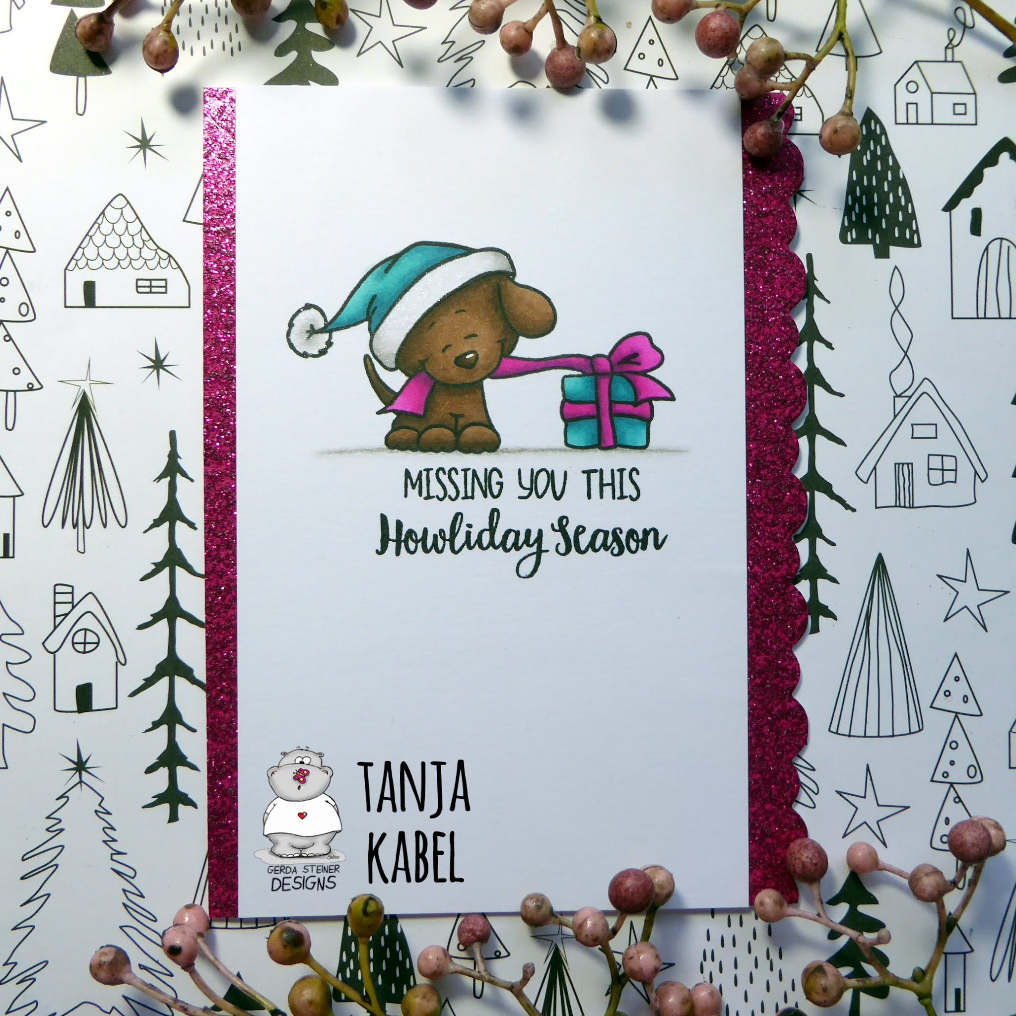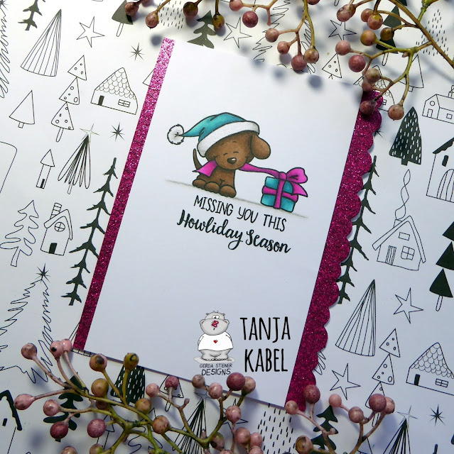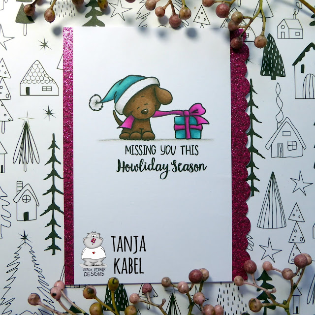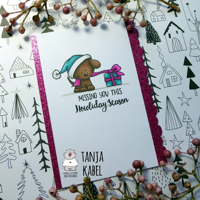 it's Tanja here and I created this sweet Christmas Card using the Gerda Steiner Designs Christmas Puppies stamp set: