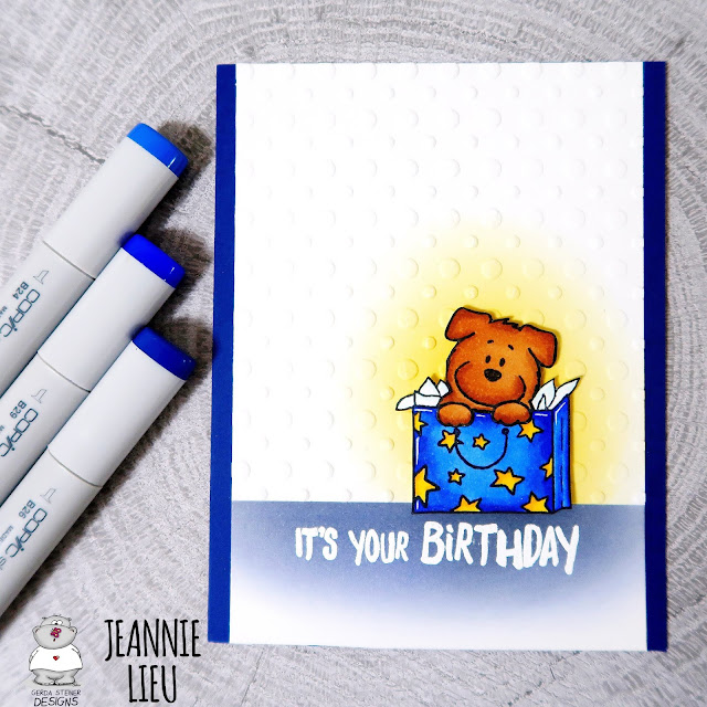 I wanted to use the Christmas Puppies set but I didn't want to create anything Christmas themed. I chose to use the puppy in the present bag. This is an easy image that can be used for birthdays and that's just want I decided to to.