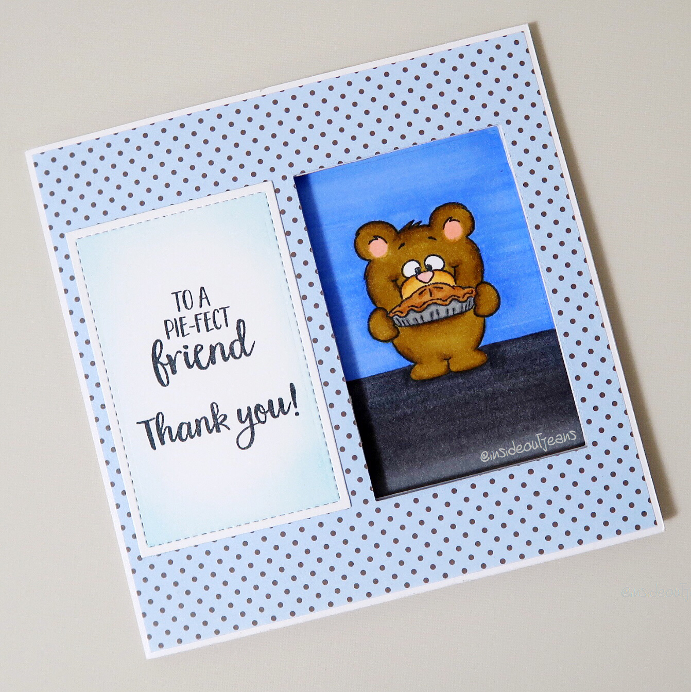 Once the recipient opens the card, you see the bear eating the pie! This card tells the story perfectly with a little magic.